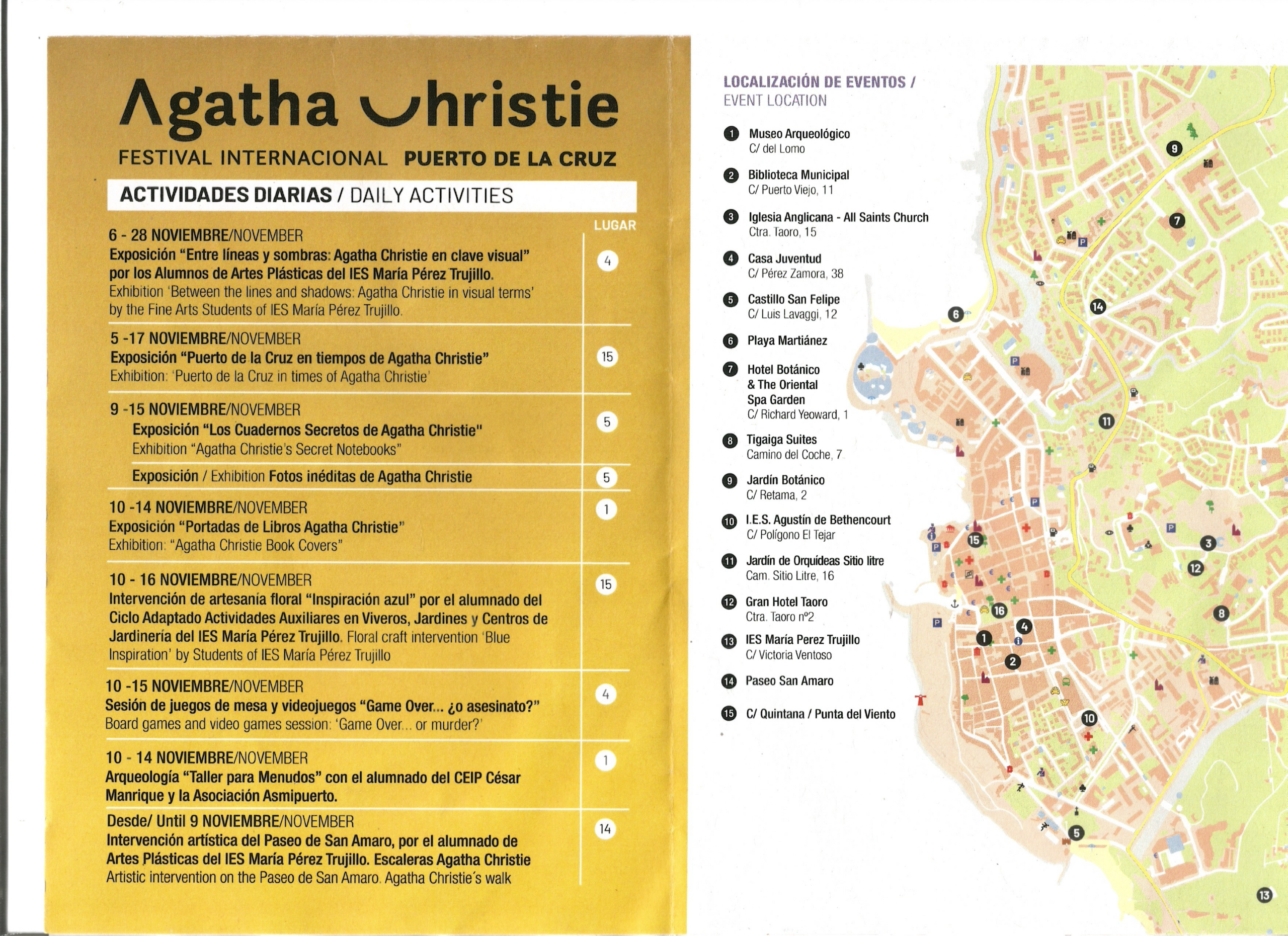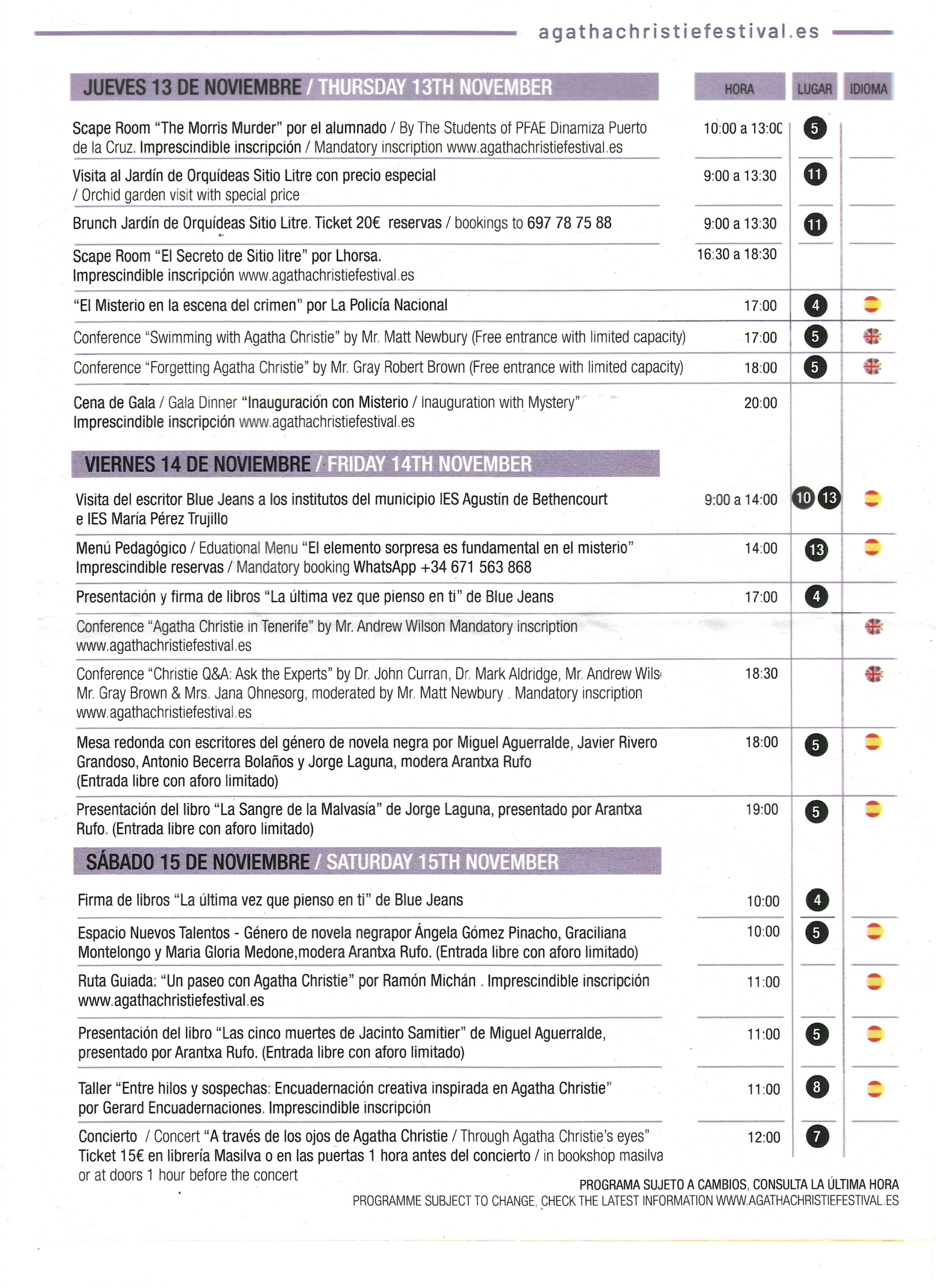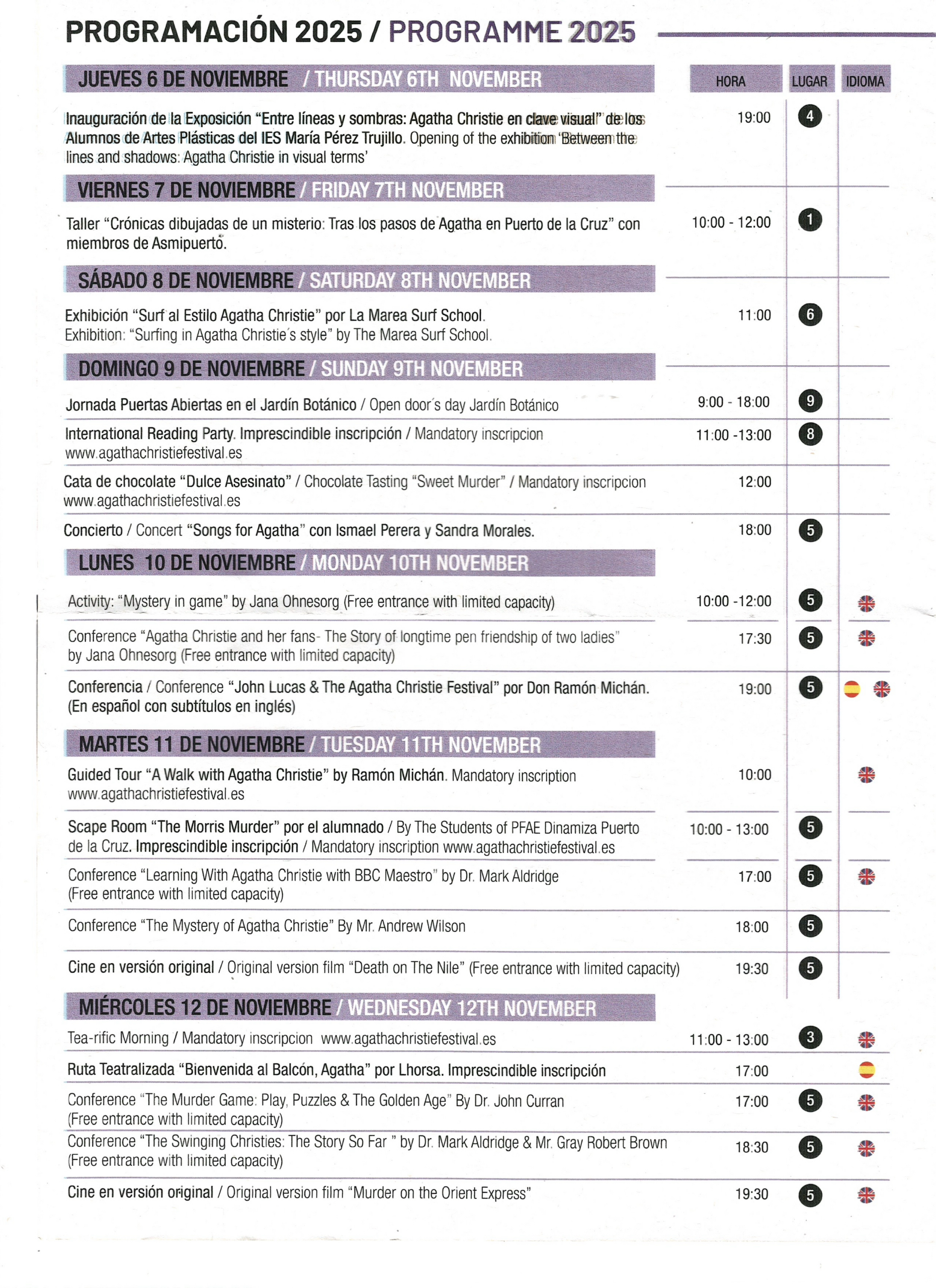 Whether you’re a die-hard Christie fan, a curious reader, a scholar of crime fiction or simply someone drawn in by the charm of northern Tenerife — this year’s festival promises something memorable.