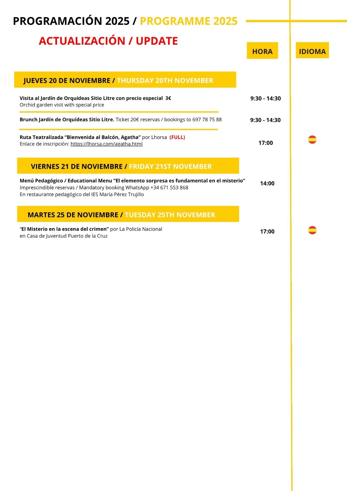 - Check event languages: Activities are offered in both Spanish and English..