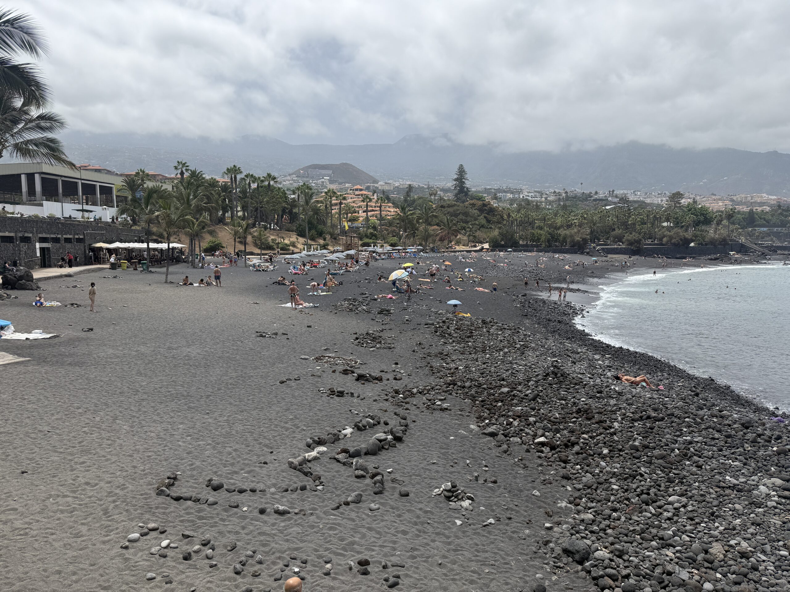 Close to Punta Brava and the Loro Parque, 300 metres of black sand, suitable for families.    Lifeguard on duty.  Volleyball court with regular competitions.  Beach showers for washing off that sand!   Burger Bar has just recently re-opened after being closed for nearly 5 years (from midday until 8pm, food only until 6pm).  Newly refurbished bathrooms and showering facilities open daily from 10am until 6pm.  Sunbeds and parasols are available to hire on this beach. Parking is on the road and not always easy.
