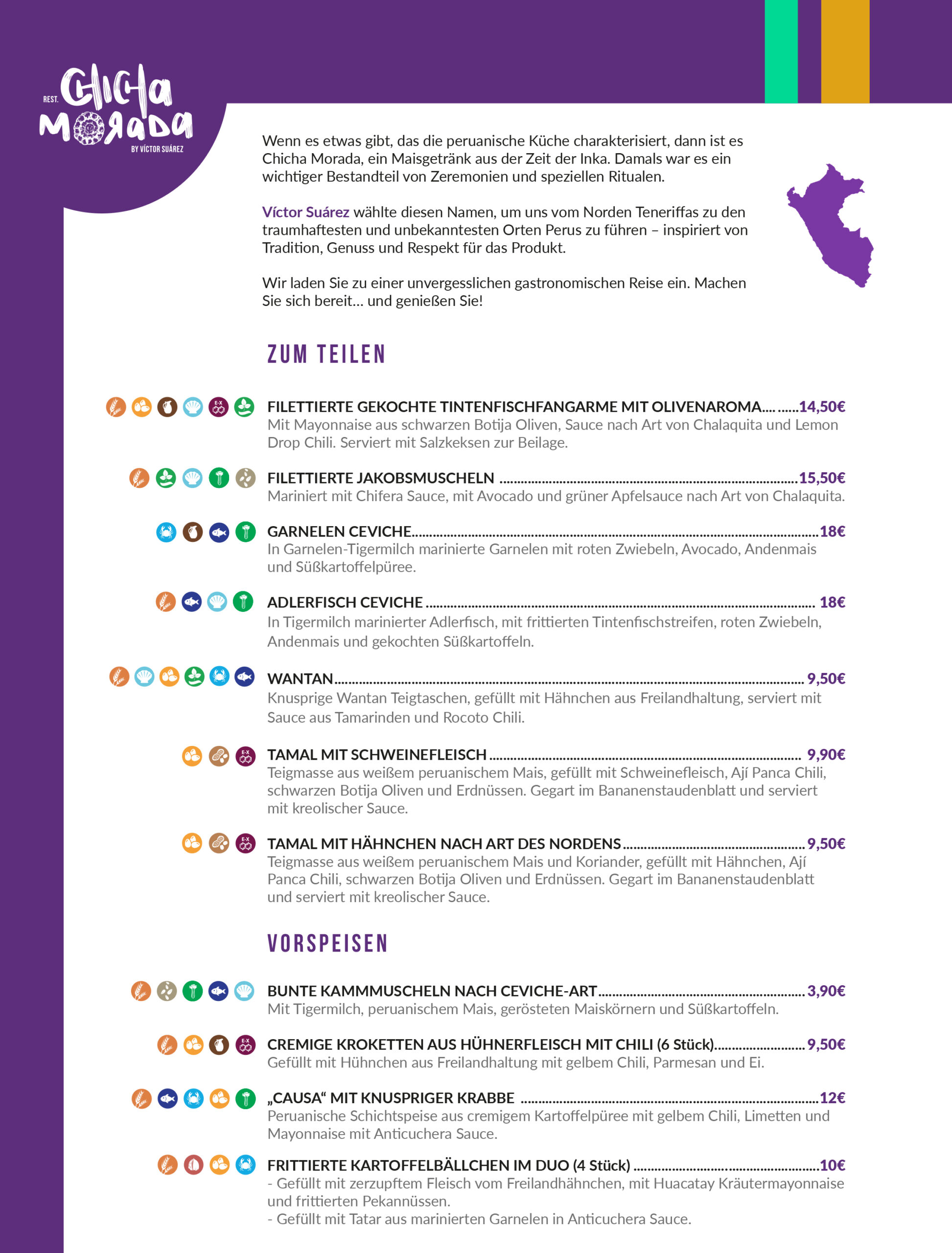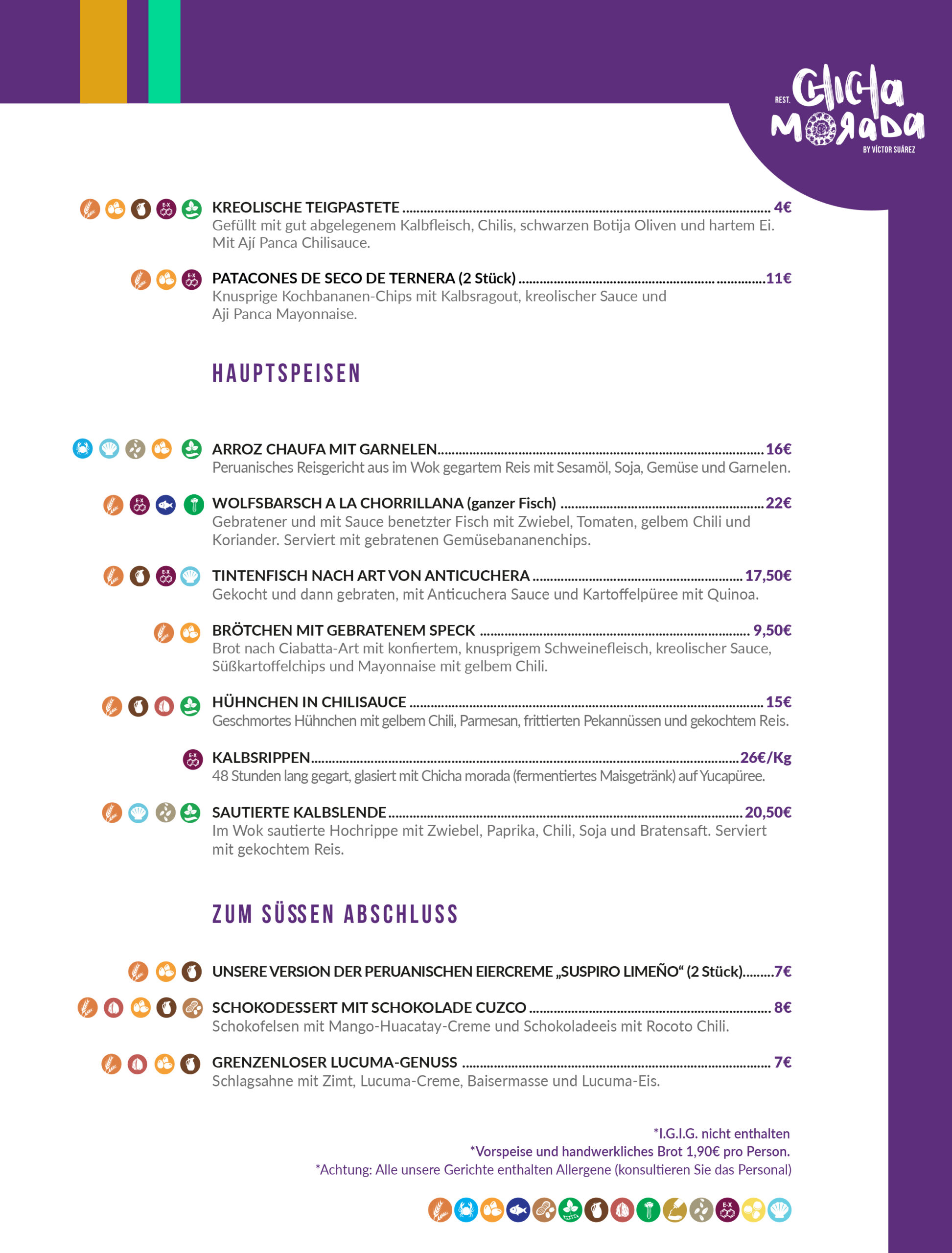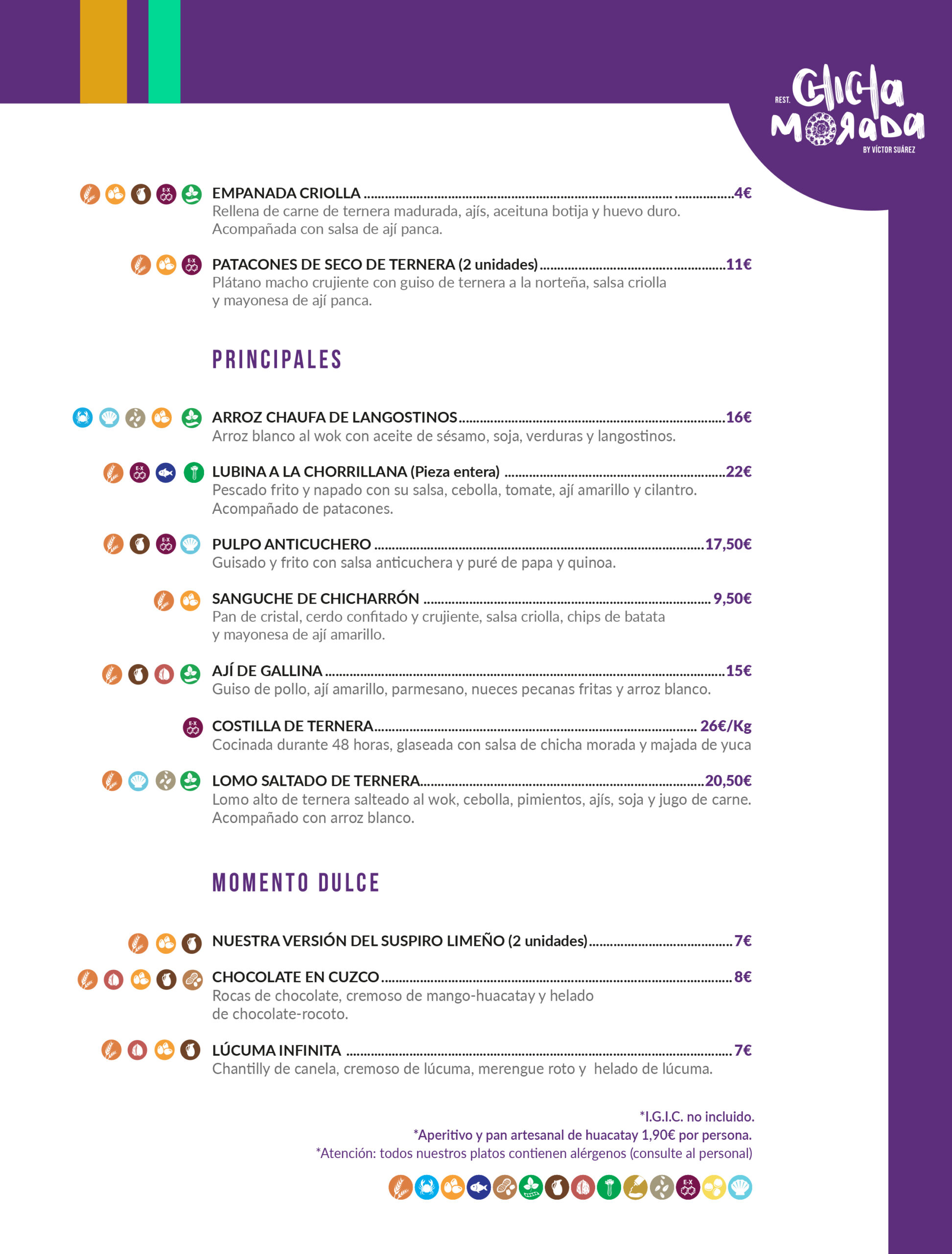 This small Peruvian restaurant at Calle San Felipe 38 is a great find.  The restaurant takes its name from the Peruvian drink of the same name – and you’re presented with a complimentary one of these on arrival.  It’s a purple- coloured drink based on a variety of purple corn which is grown and harvested in the Andes – absolutely delicious.