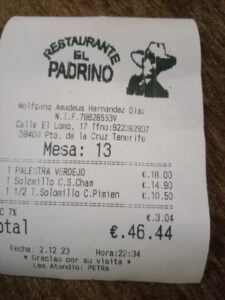 Part of an ever-increasing chain of restaurants which also include El Padrino San Amora in La Paz, on the sea front opposite the Lido – the Restaurant La Taberna del Lago and just off Plaza del Charco, Restaurant El Pescador.