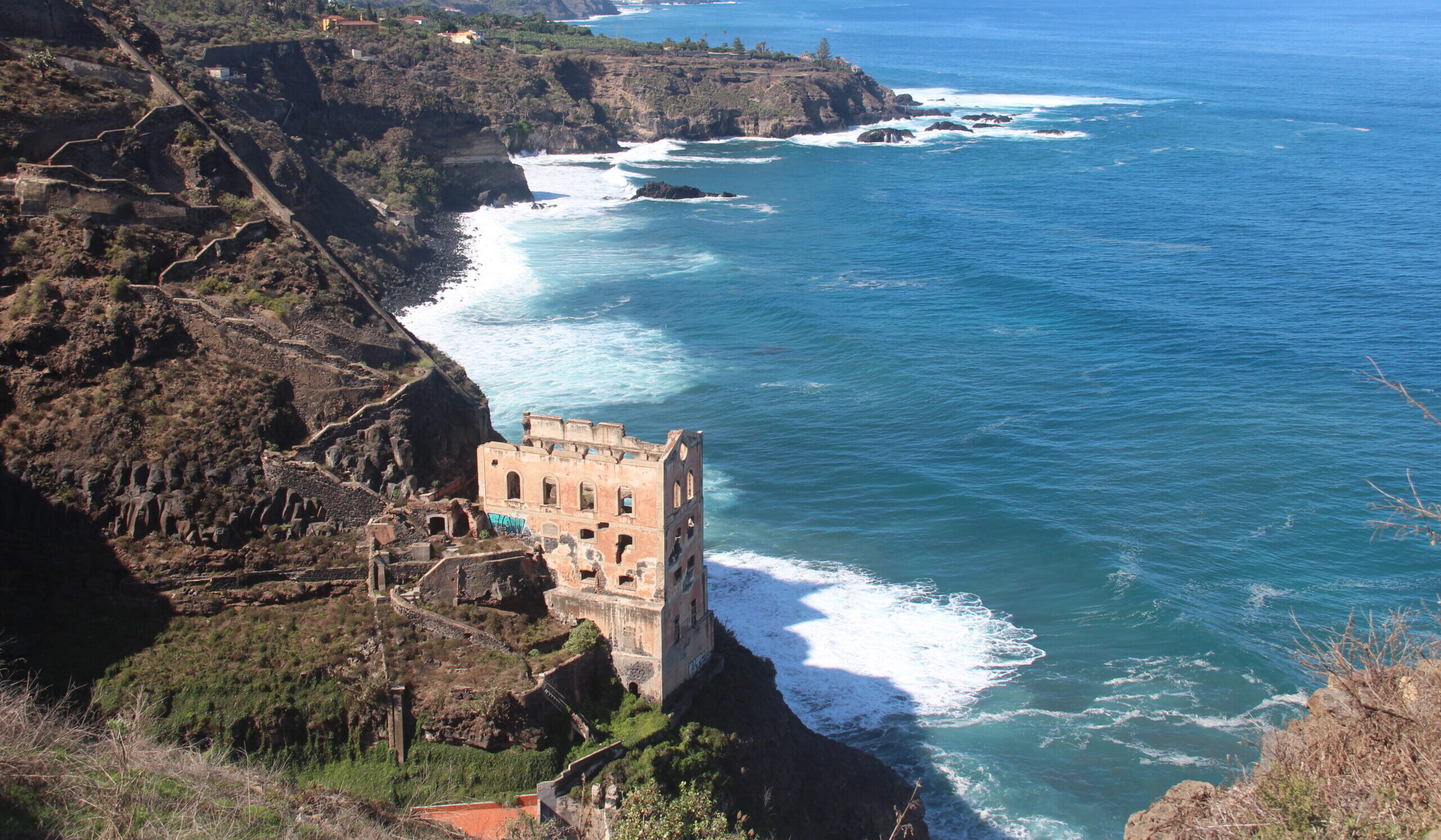 Perhaps one of the most fascinating abandoned and derelict buildings on the island of Tenerife – certainly in the north of the island anyway – is the old pumping station on the coastline near the village of Los Realejos, known locally as “El Elevador de Aguas de Gordejuela” or “Casa Hamilton”.