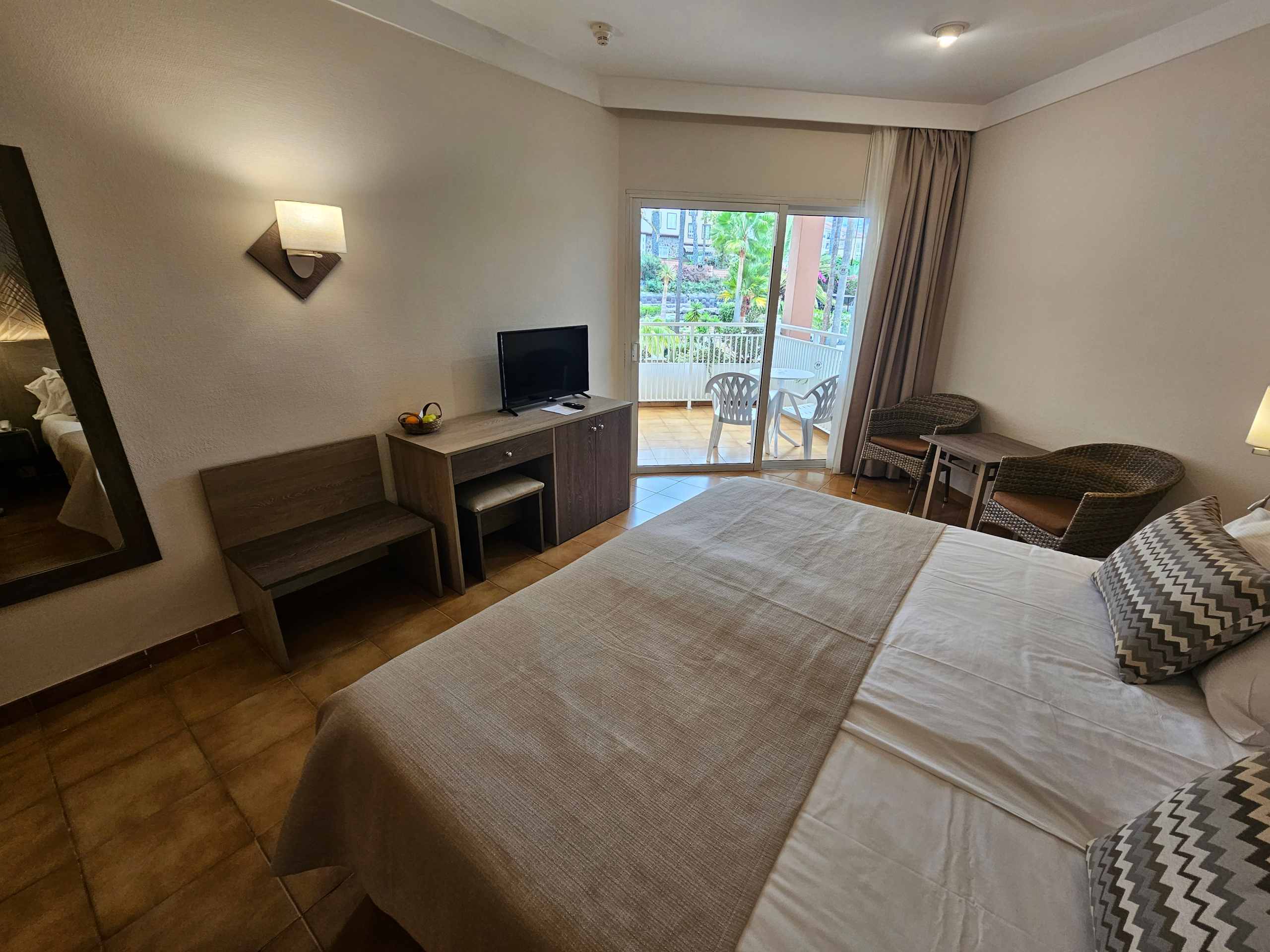 My room was located above the restaurant but had a nice pool view which faced Teide when visible. The room was a great size and had everything i needed including a free to use fridge with complimentary water on arrival. There was also a safe for hire from reception.