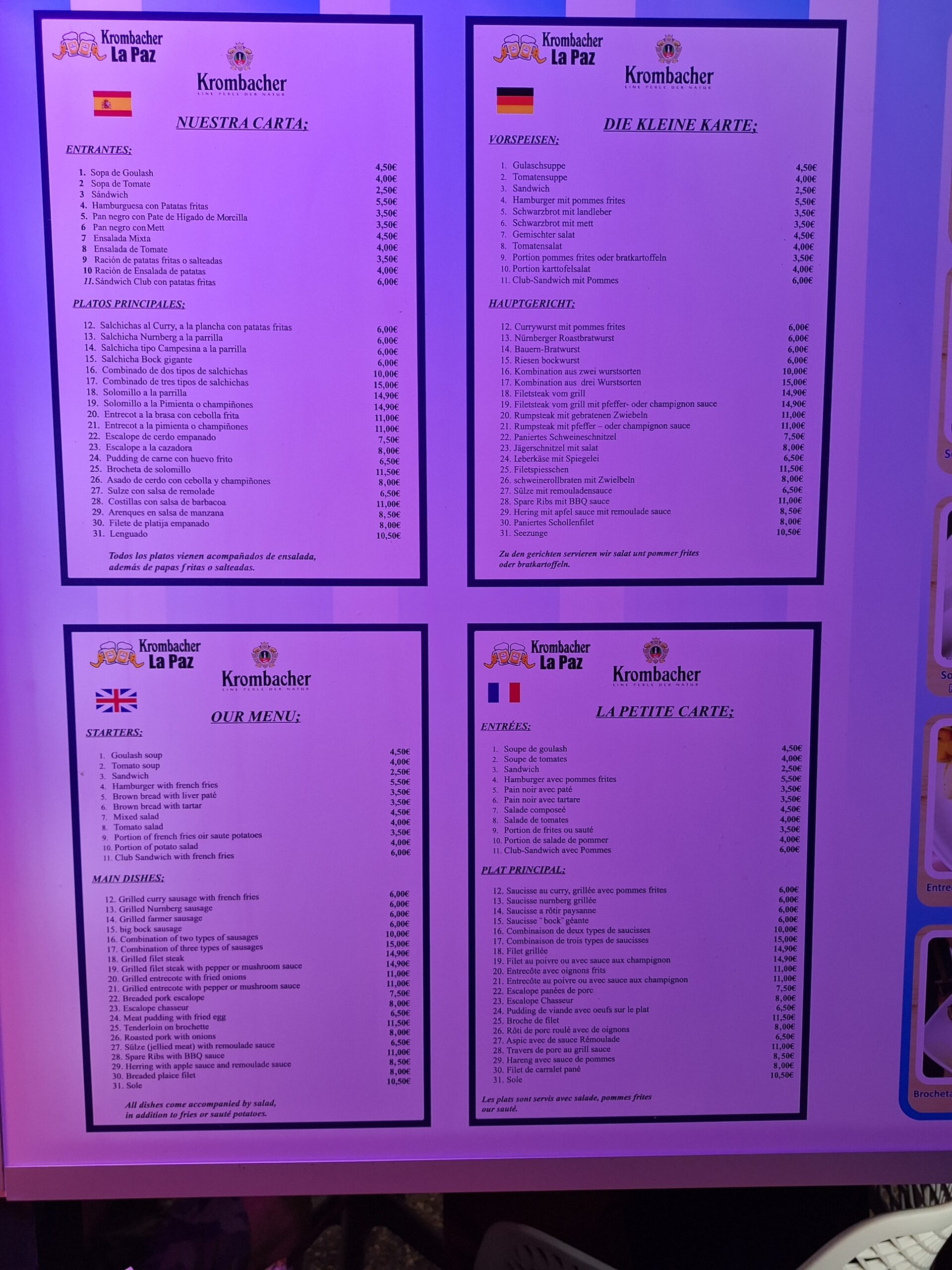 A first visit for us to the Krombacher Inn in La Paz, which seems to be a popular choice for locals and tourists, so we were expecting great things!