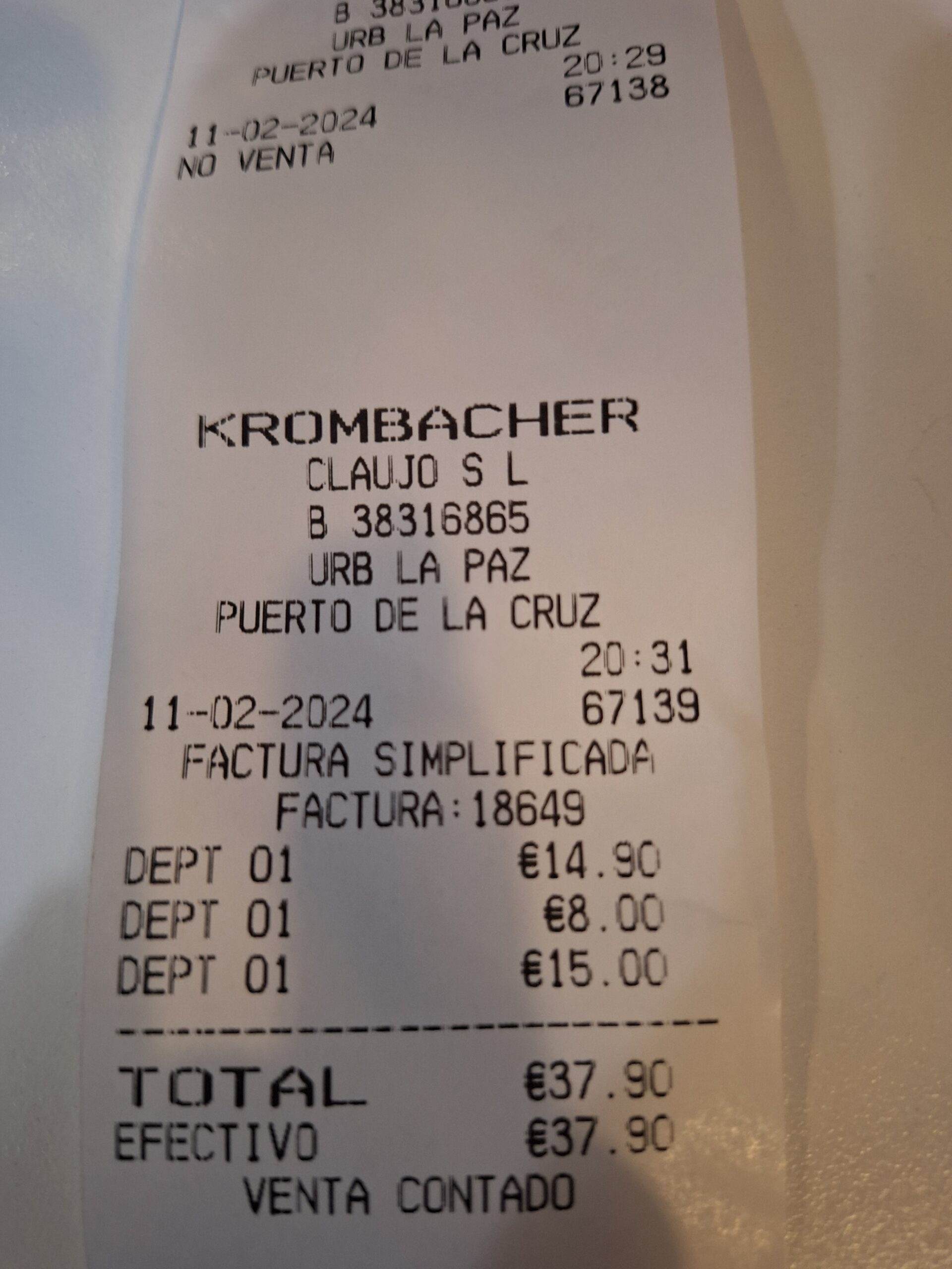 For a bottle of wine, and two main courses our meal cost us €37.90