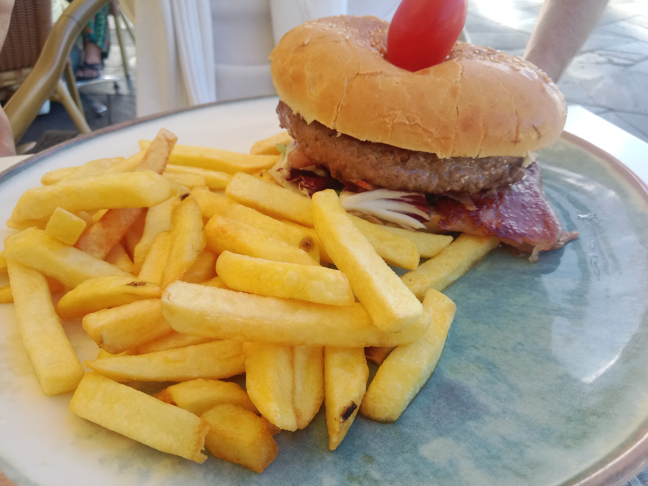 My partner had an angus steak hamburger which came with chips (not homemade), but the burger was thick and cooked just as he liked it!