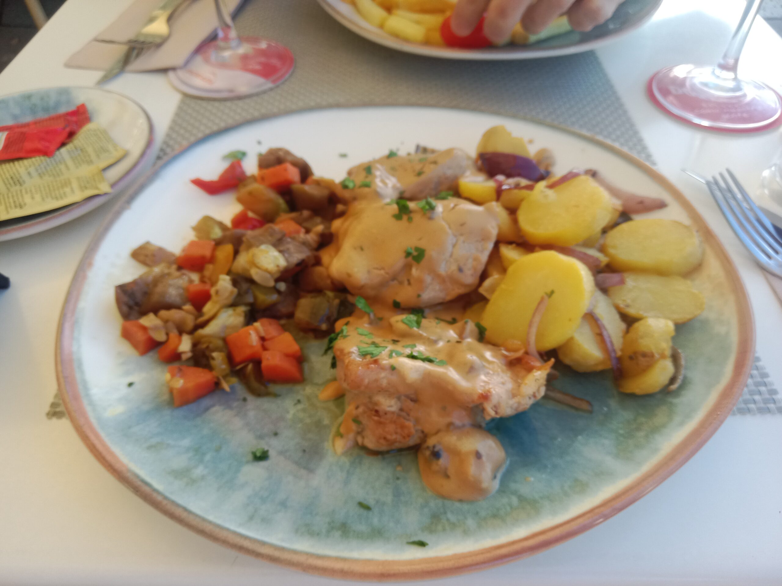 I choose the pork fillets in mushroom sauce, which comes with mixed sauteed potatoes and onions, accompanied by fresh mixed vegetables. Large generous size portion with the pork being well cooked and very tender.