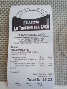 The menu includes mixed tapas, and the usual range of fish and meat dishes, as well as pasta, pizzas and hamburgers! I have enclosed the QR for the menu, so that you can take a look for yourself!