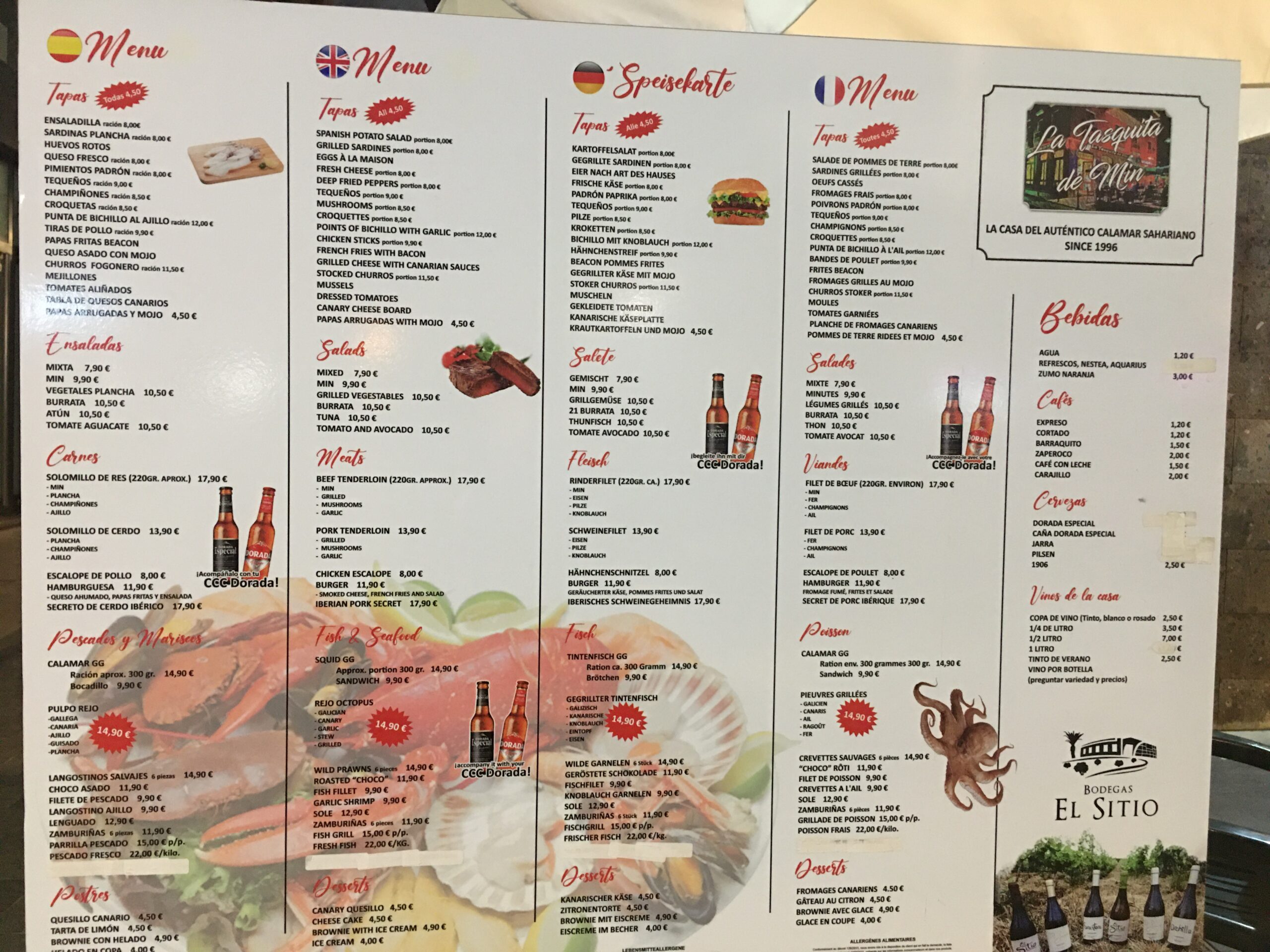 La Tasquita de Min is a specialist seafood restaurant not far from the Muelle. It's open until 10:30pm. We arrived around 9pm so it was getting quiet.