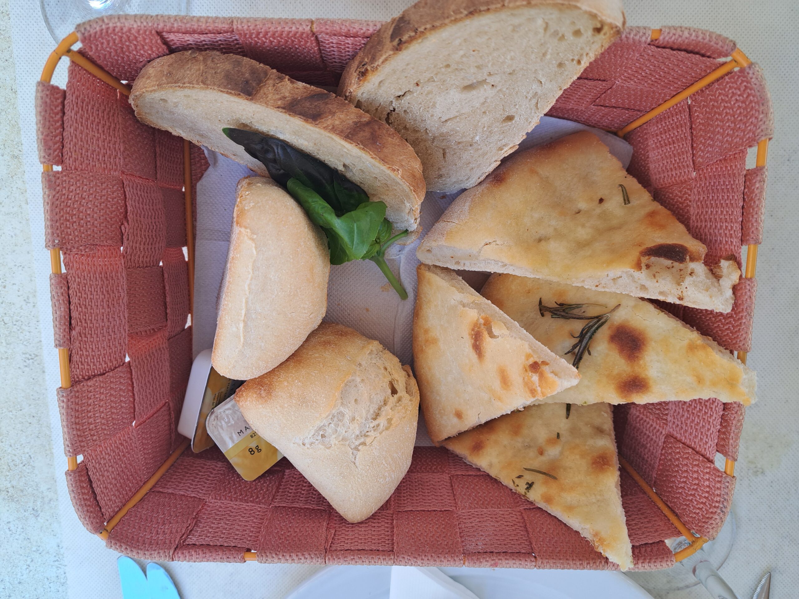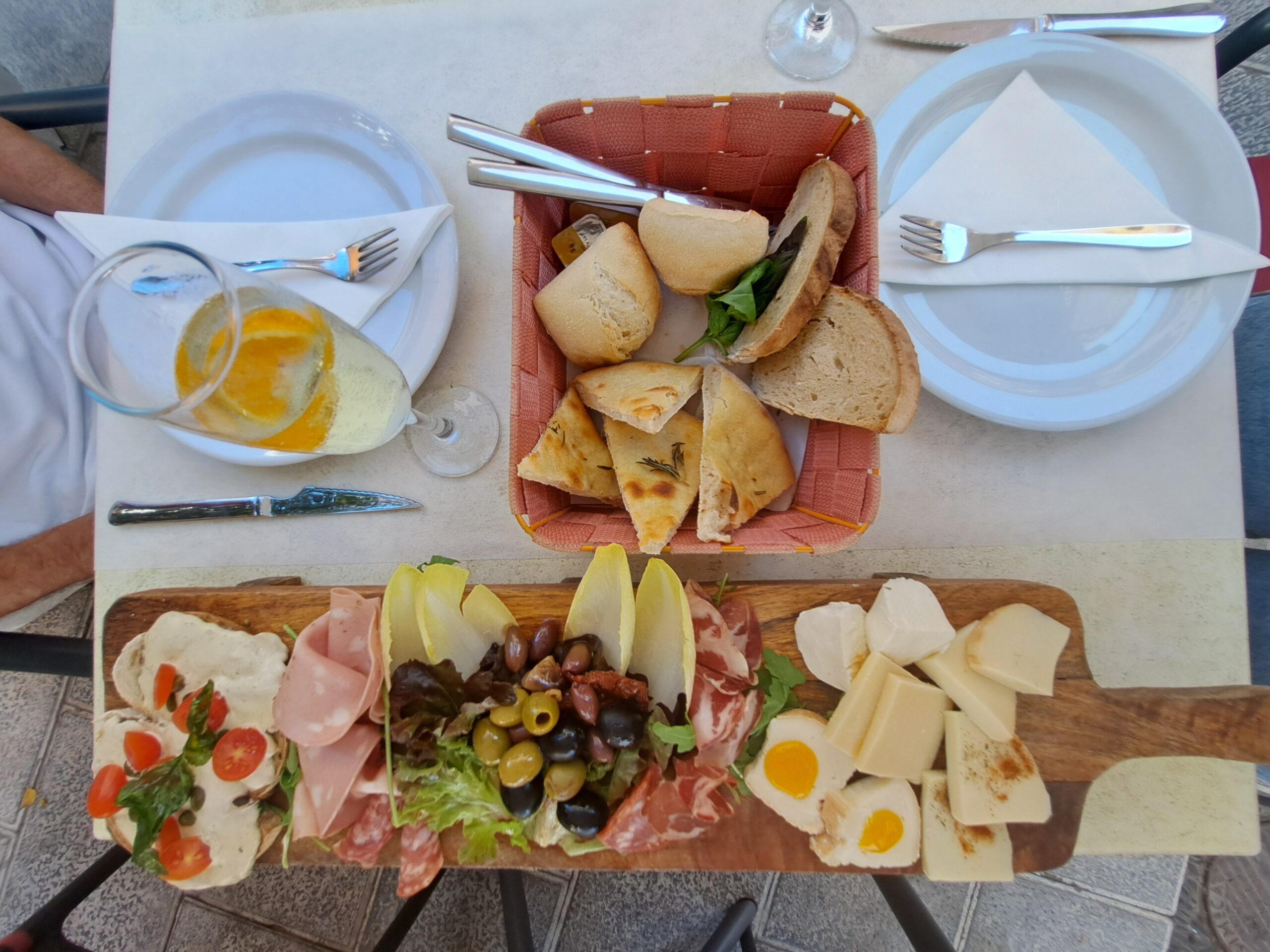 Our recommendations would be to start with the antipasto ā served on a wooden board ā a mixture of cheeses and ham, which we had accompanied by a variety of fresh breads!