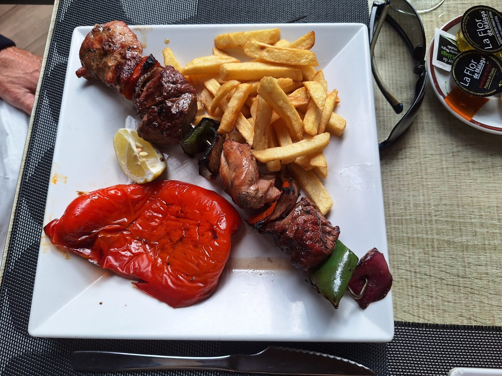 My partner had a mixed kebab which came with beef, pork, mushrooms, onions and pepper on a fully loaded skewer. The kebab was cooked on an open grill which made it extra tasty. Again, served with homemade chips and some roasted red pepper, a great choice for a meal.