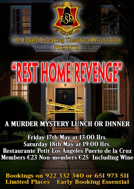 Just a few tickets left for both performances of the next English Speaking Theatrical Association murder mystery. Contact Sheila Perrin to book! 922 332 340 or 651 973 511