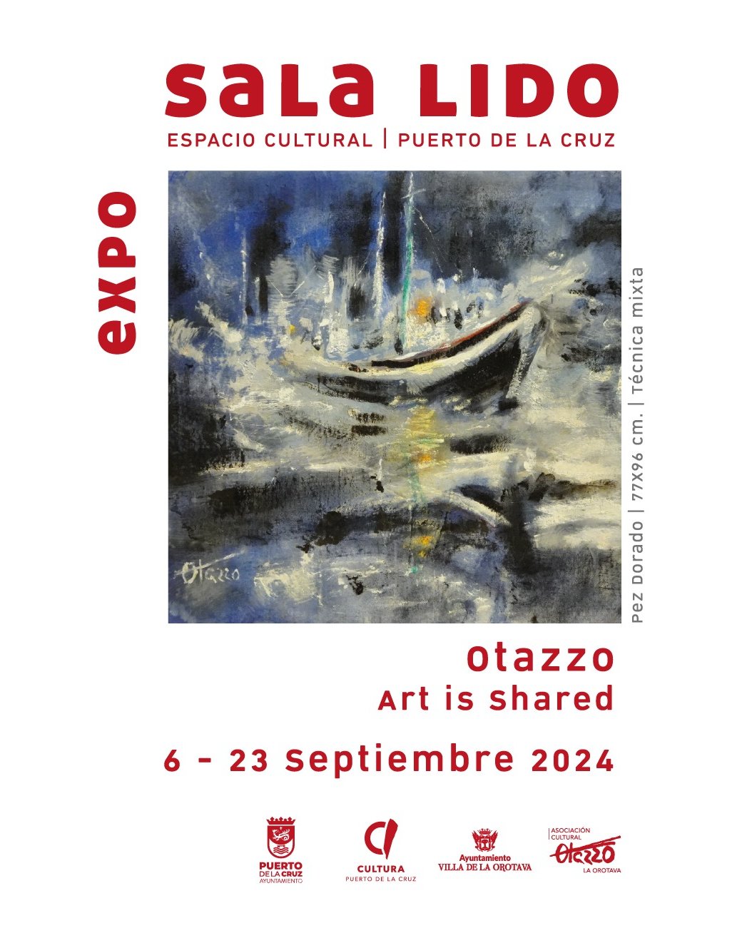 The Department of Culture of Puerto de la Cruz invites you to visit the Otazzo exhibition at the Sala Lido cultural space in the Costa Martiánez Tourist Complex from September 6 to 23.