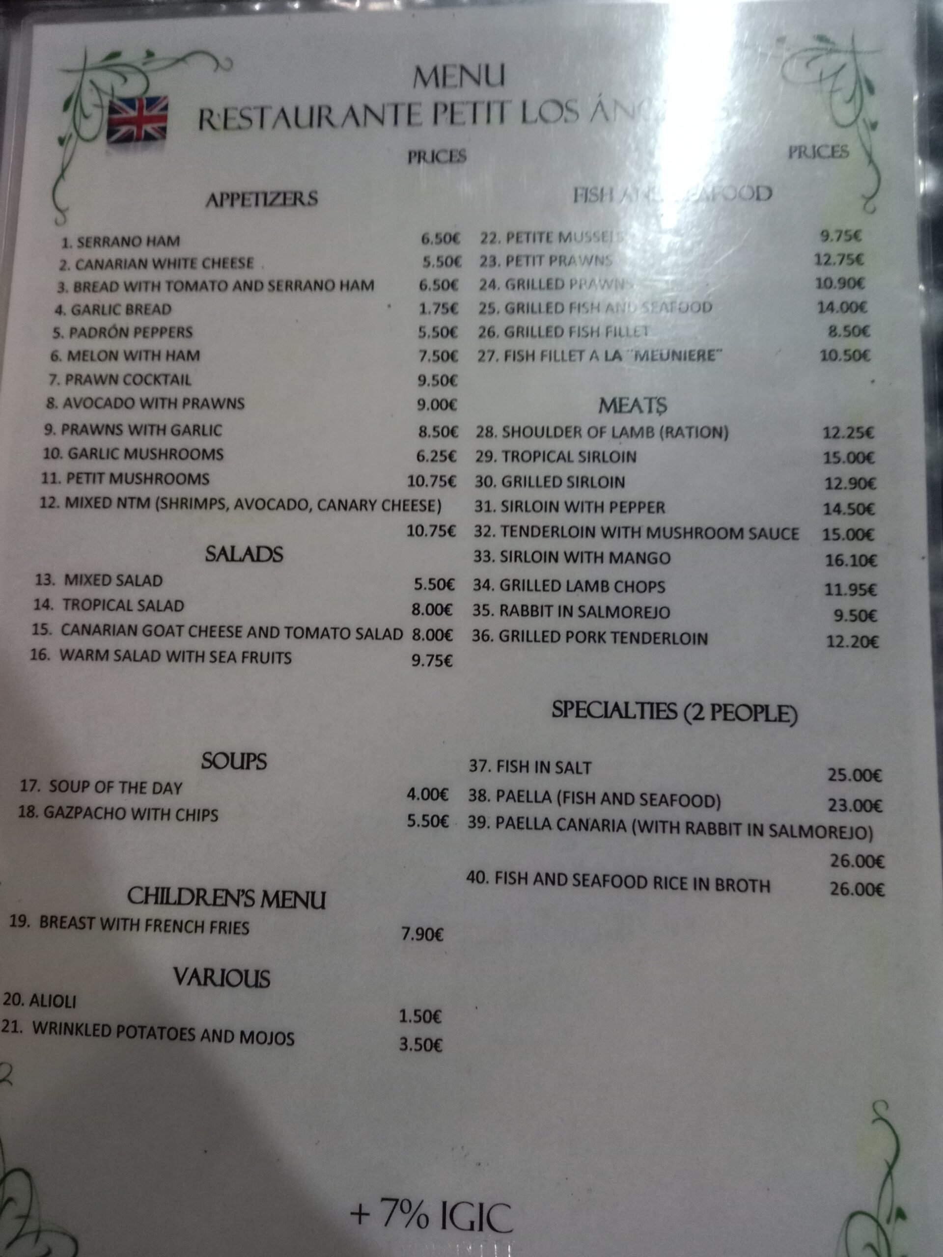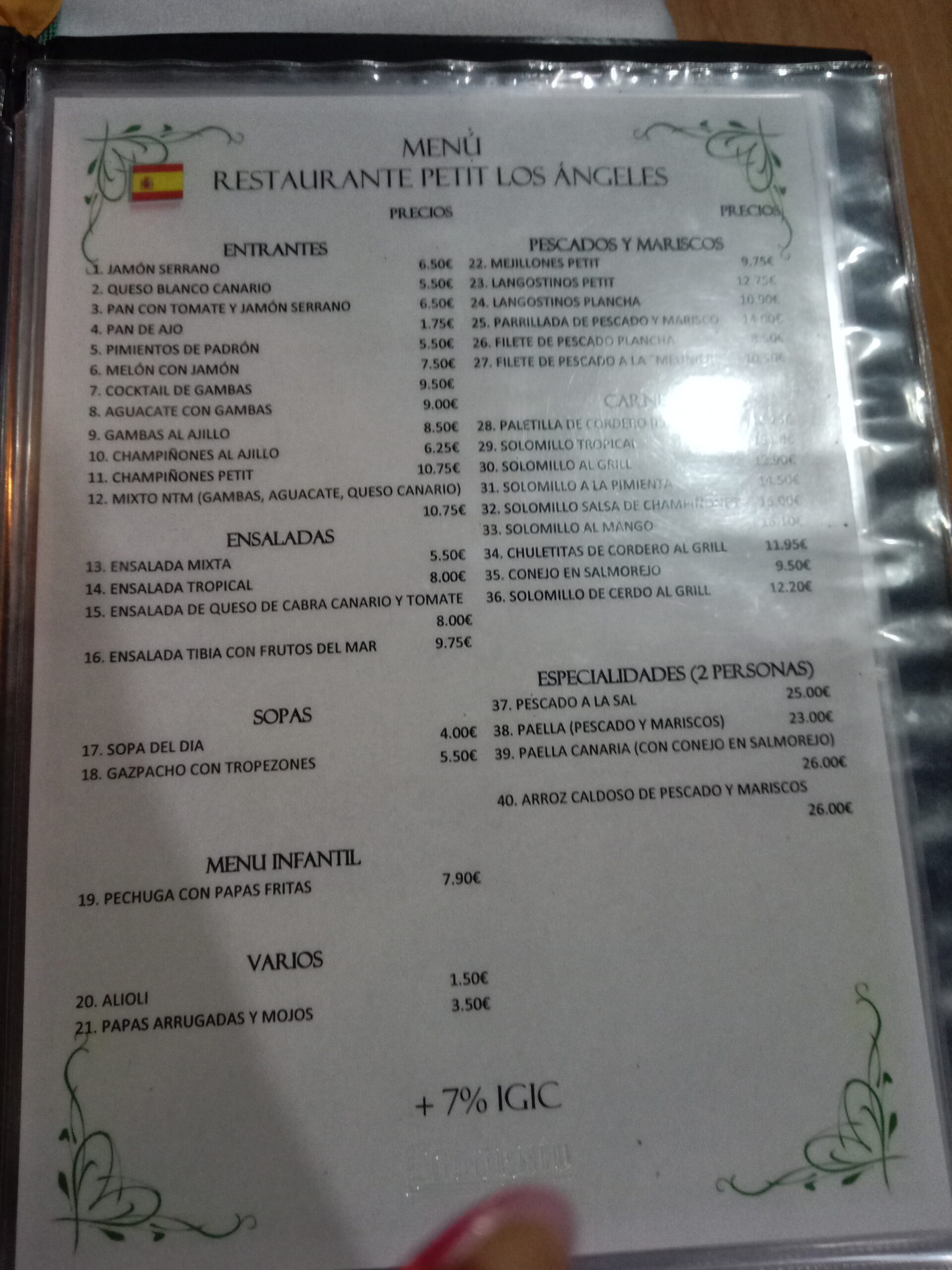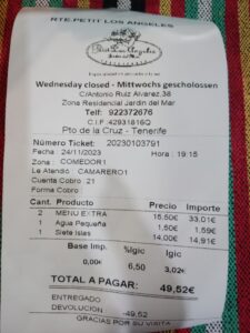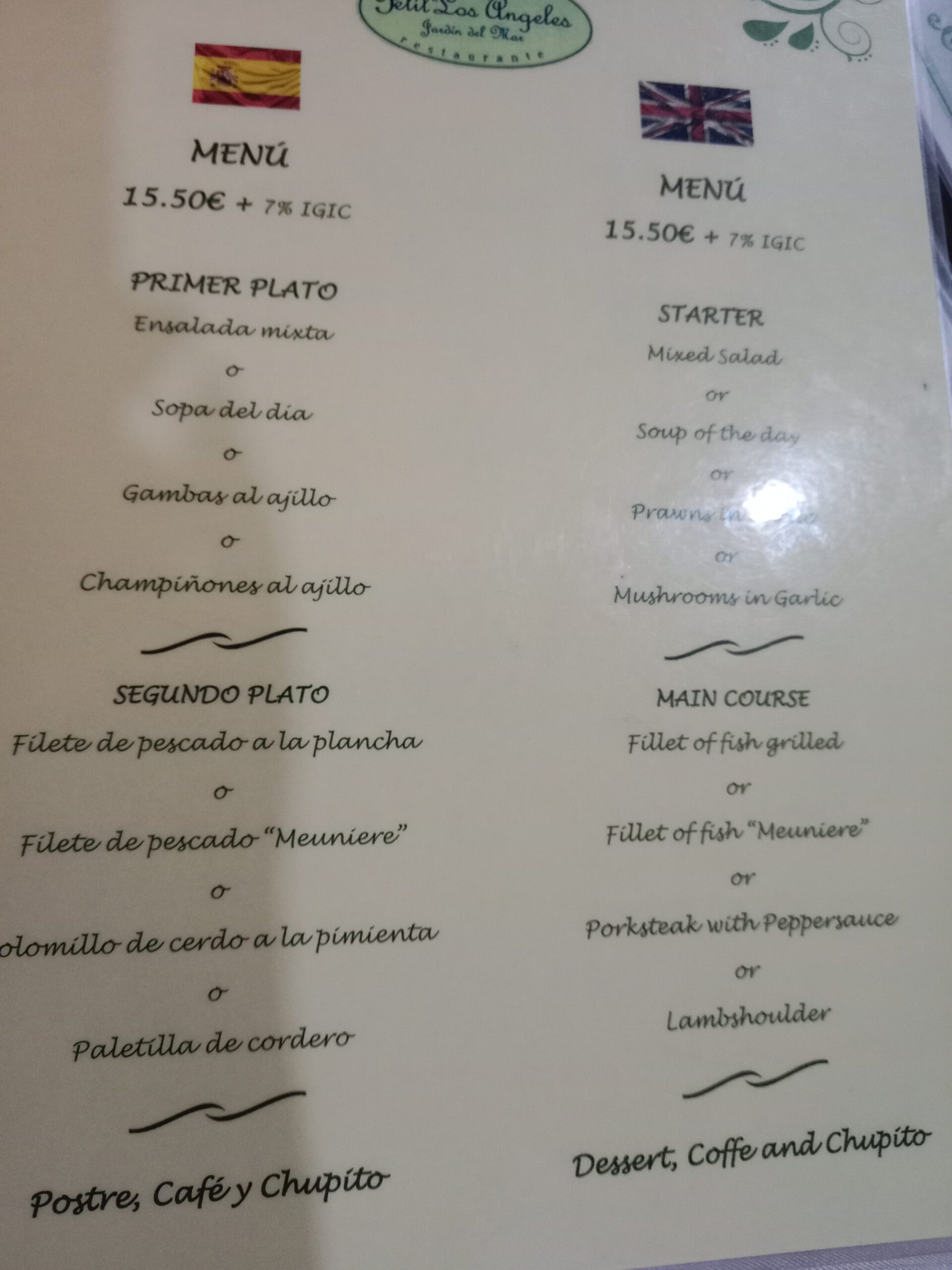 We decided to have the menu of the day at a cost of 15,50 euros (plus 7% IGIC) per person.