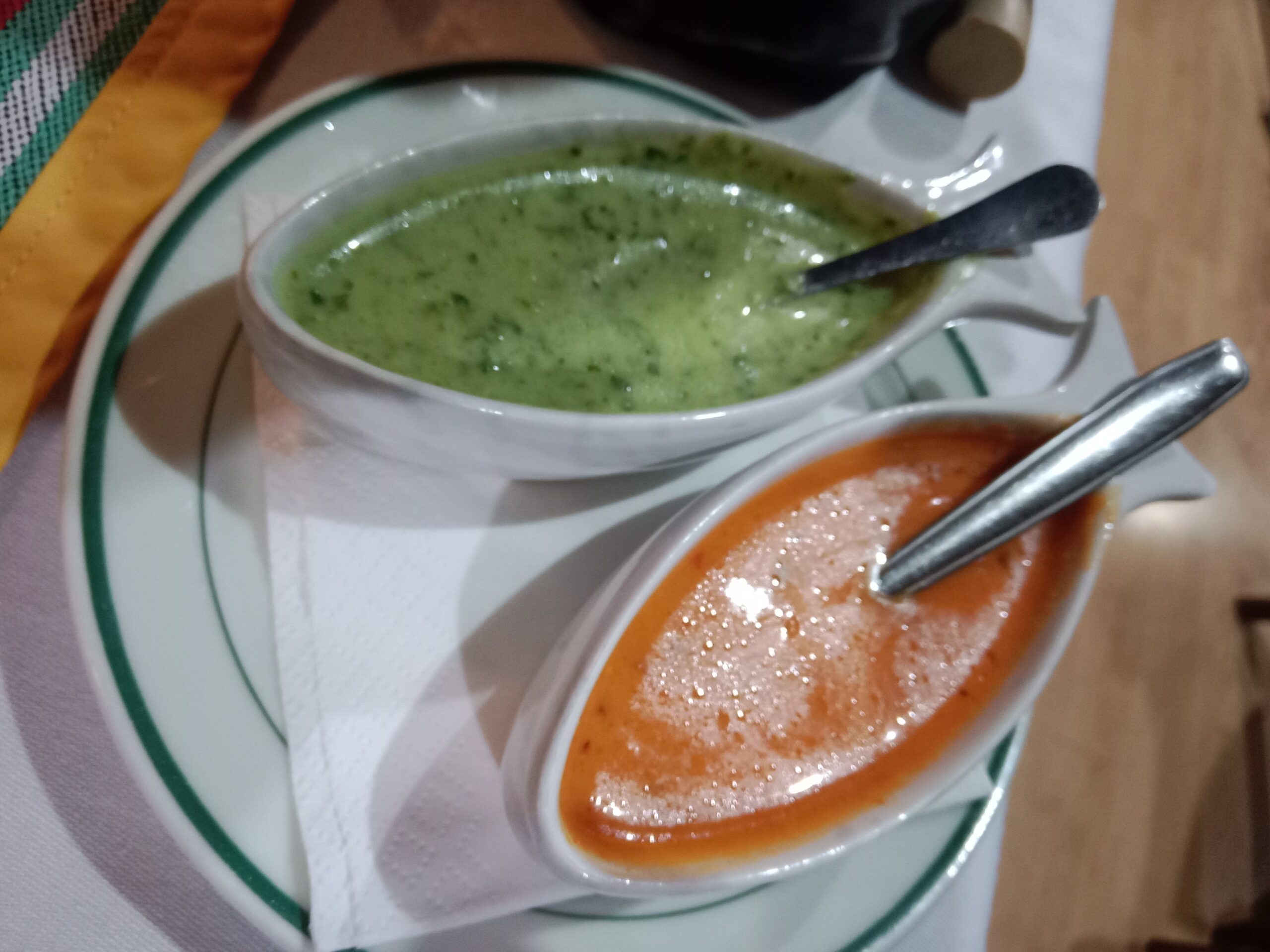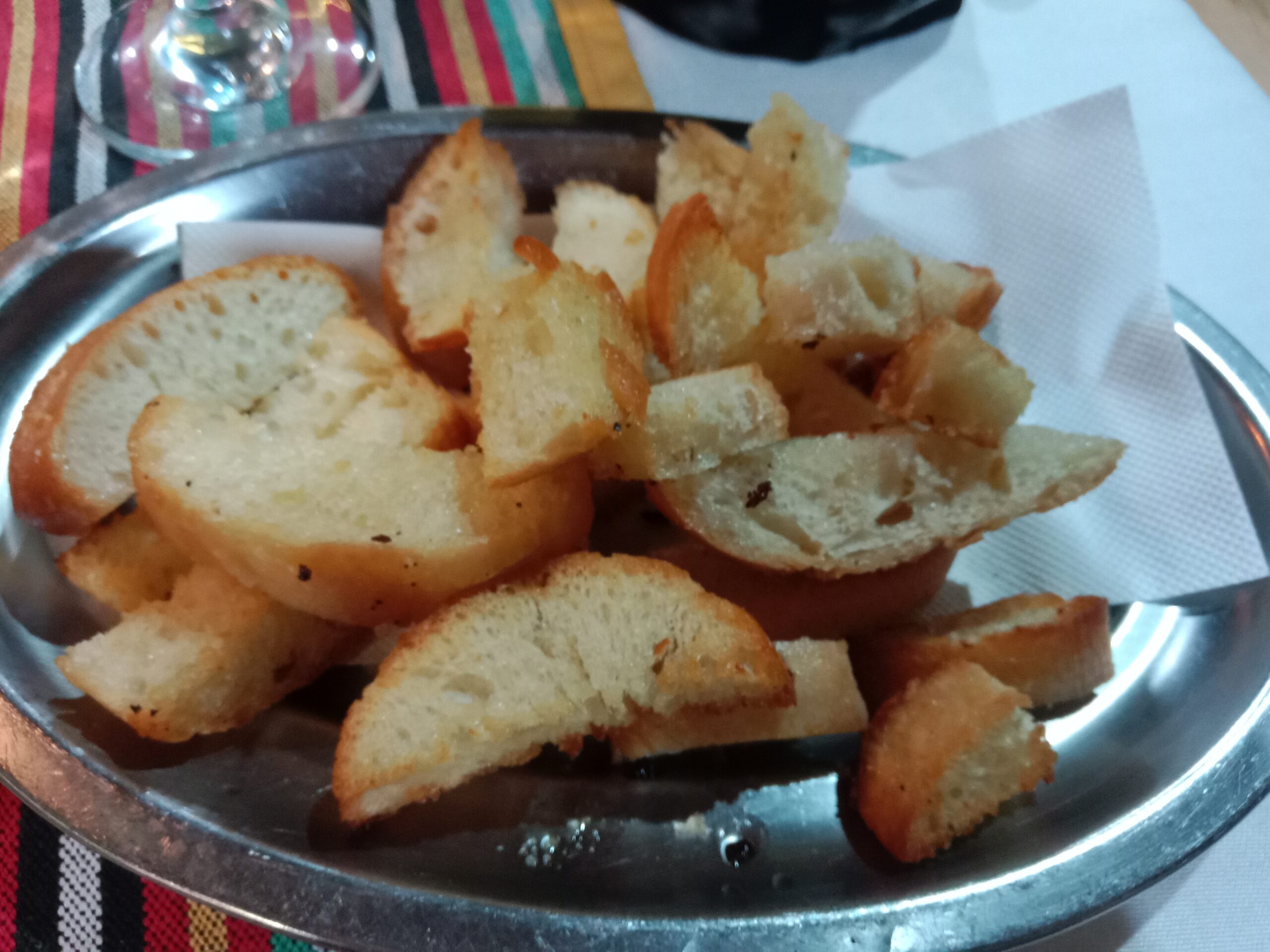 Whilst we waited for our starters to arrive, we were served some very hot garlicy crispy pieces of bread to eat with mojo sauces.