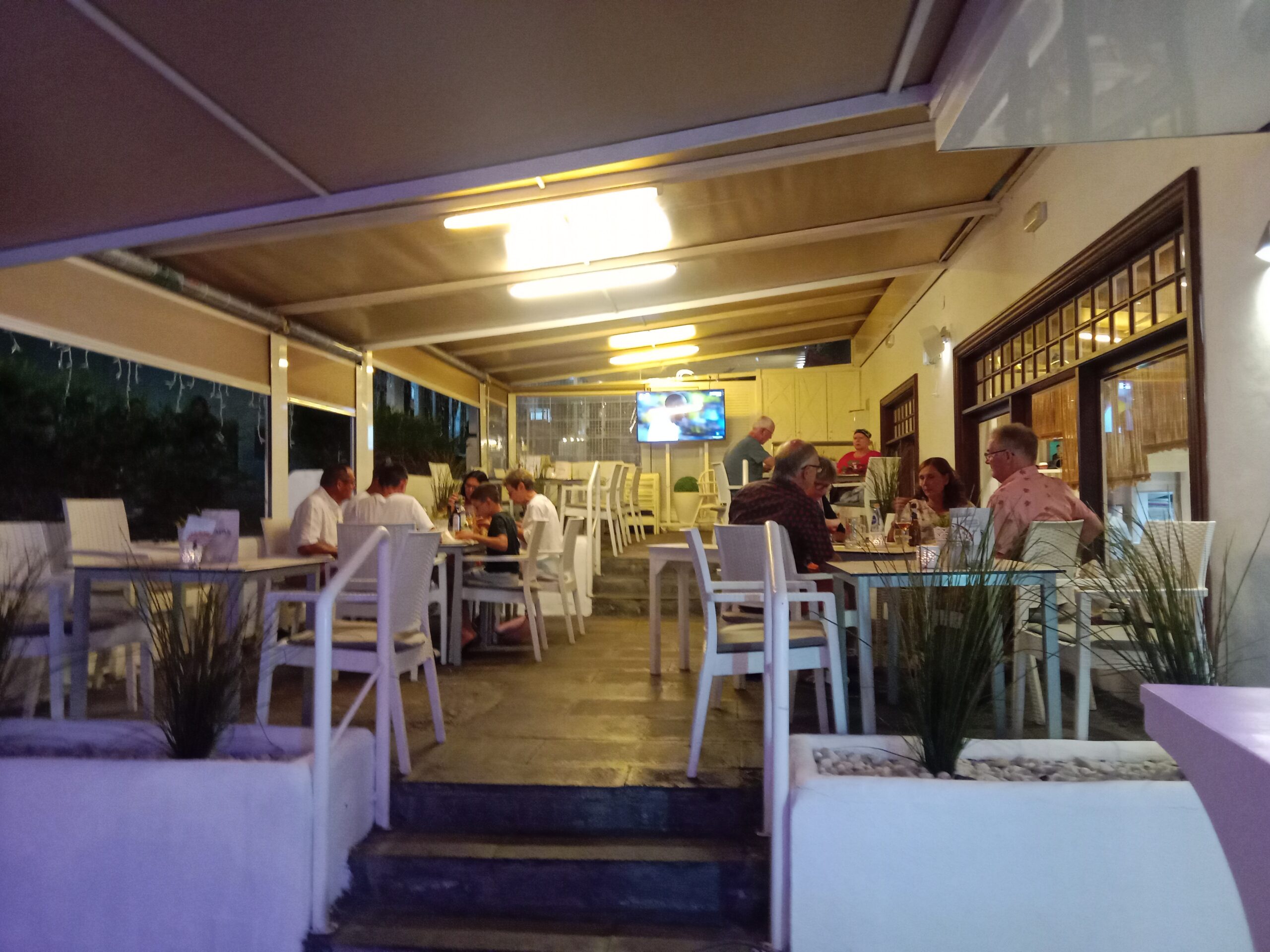We ate in restaurant that is called La Plaza and it is the white coloured one located underneath the Chinese restaurant on the corner opposite the Hotel Tropical.