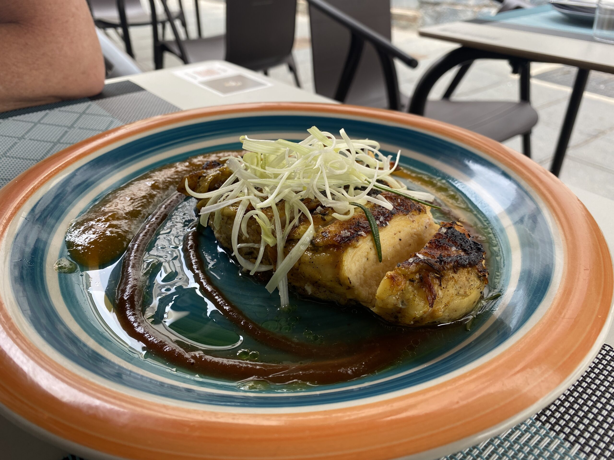 We had the Homemade Indian Thali platter between the two of us – which was beautifully presented. From the fusion menu we had fillet of chicken with Tamarind sauce and Mango Chutney.