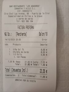 It's located out of town in an area called Las Arenas, along one of the main roads in to Puerto, called Ctra General Puerto Cruz – Arenas, open every day from 12 midday until 11pm at night. A long-established place having first opened it’s door in 1972 – extremely popular with the locals.