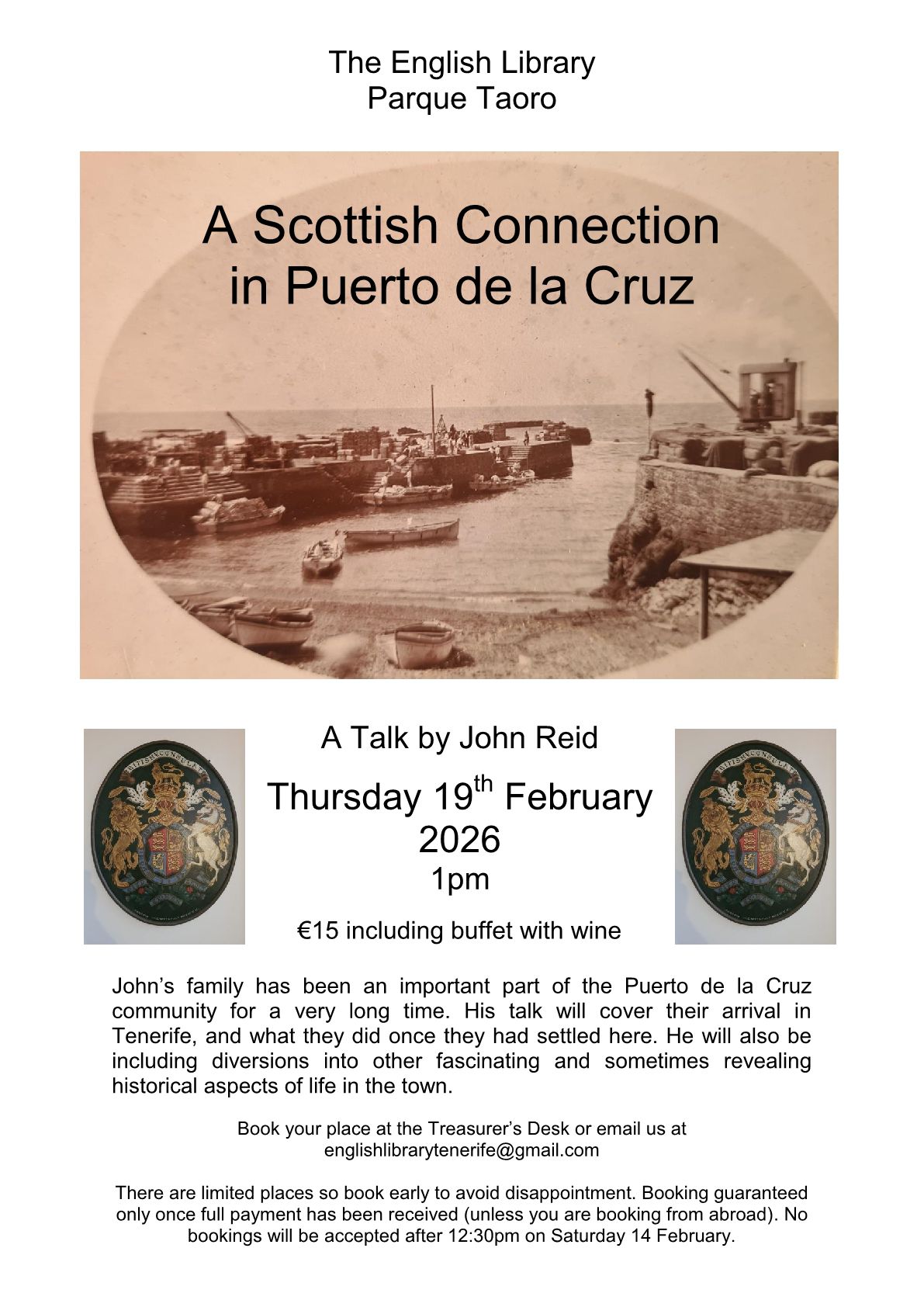 This year's monthly Autumn/Winter talks at the English Library start on November 20 with a fascinating offering by Sheila Perrin entitled "A Potted Spanish History"